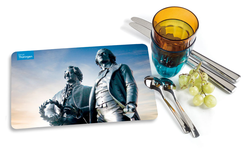 Maße: ca. 23 x 14 cm Material: HPL (High Pressure Laminate) mit Leinendruck auf der Rückseite.